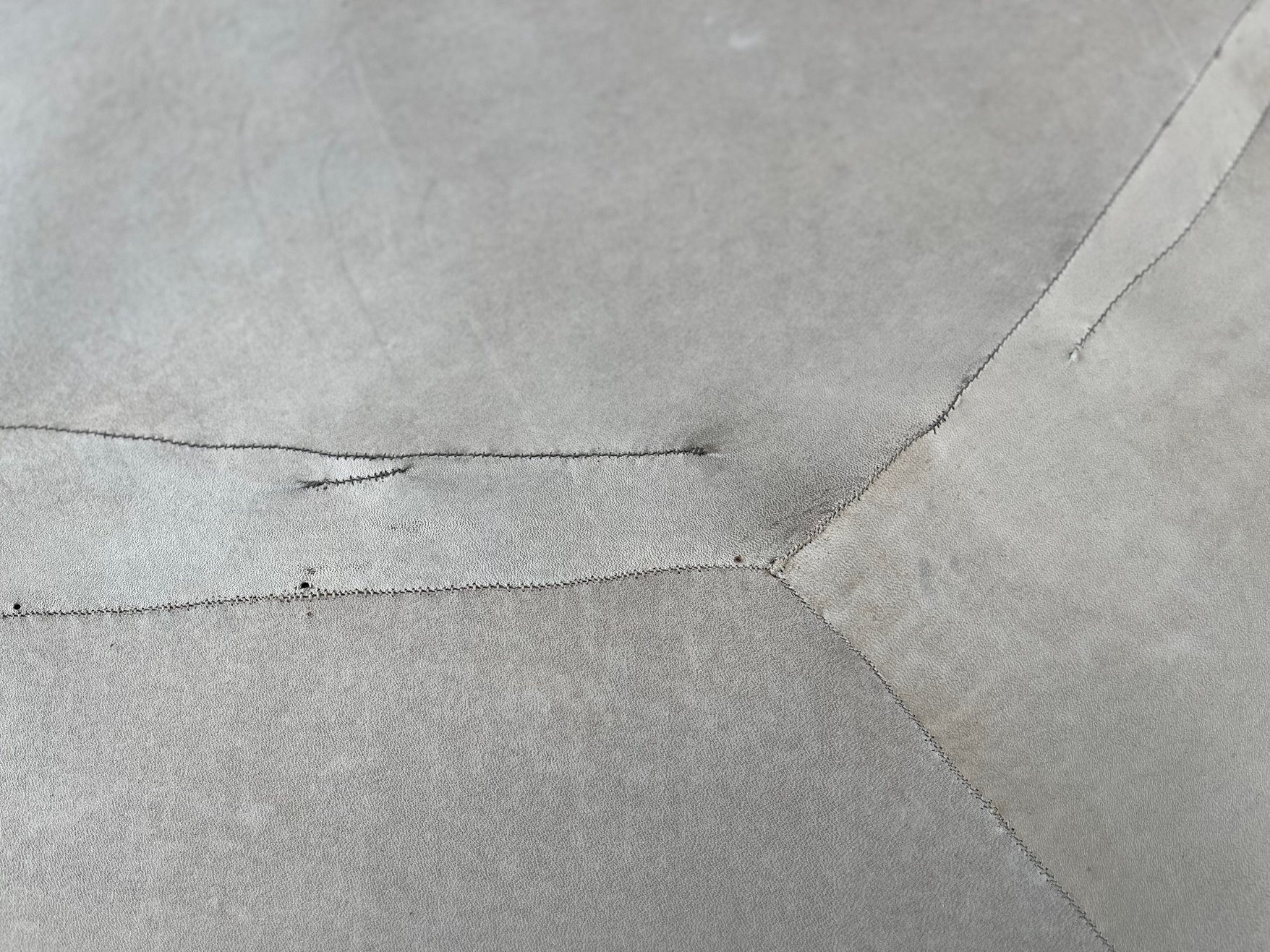 The work consists of a sculpture made of 12 seal skins sewn together by hand and streched out so the stitches are visible on the outside. It is installed floating in the air, and walking into it, it folds around the viewer's body. A speaker is mounted inside the skin with voice and sound.