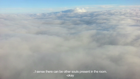 This work came out of a series of interviews with different healers and esoteric practitioners in Norway. The video shows a descent from the sky down through a gray mist of clouds towards Earth. The audio is a conversation between the artist and a Norwegian healer and medium talking about her perception and understanding of working with body and spirit, and her experience of past, present, and future in relation to this work.