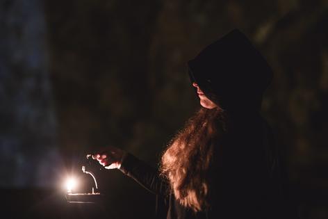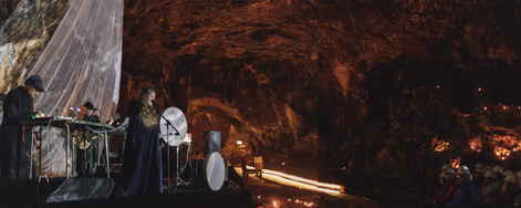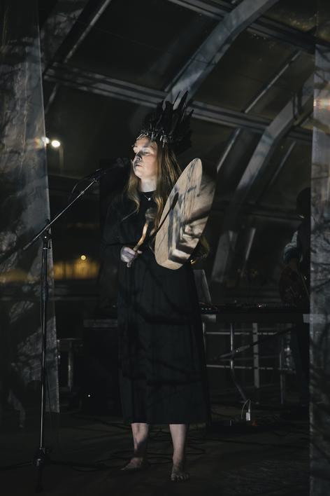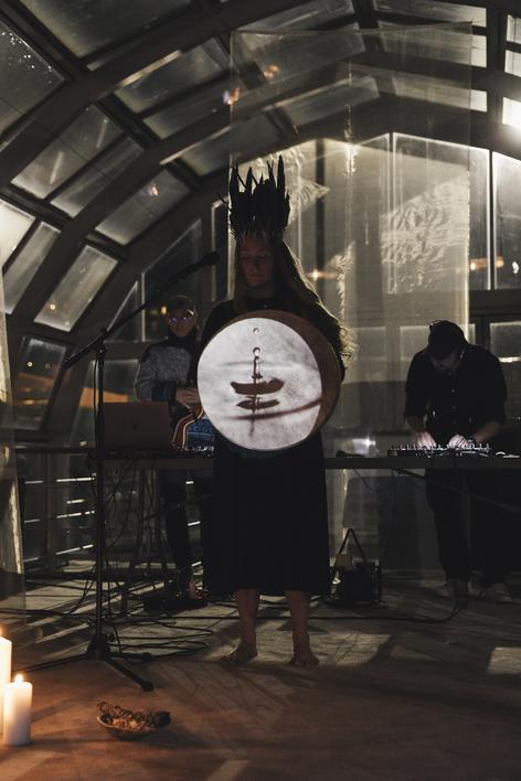 Audiovisual concert and ritualistic performance with acoustic and electronic music and live visuals.