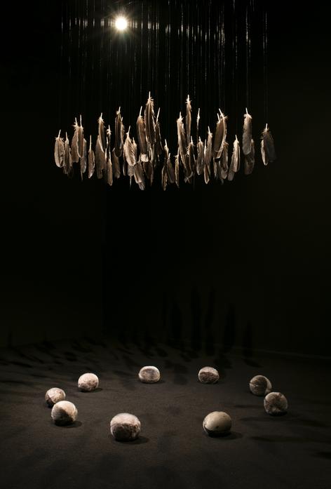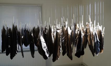 Materials: raven feathers, sealskin, wood, string.