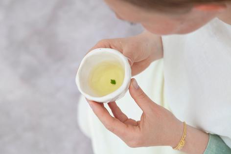 Durational performance and installation. Materials: Wild chervil, ceramic cups, plantdies textiles.